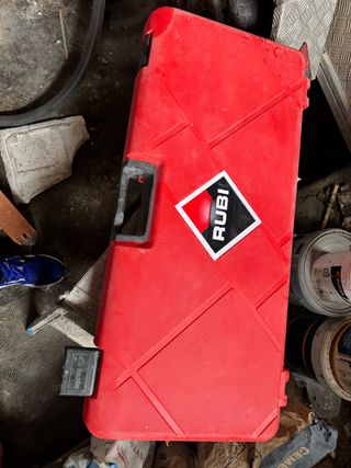 Cortadora de azulejos de la marca Rubi, utilizada únicamente en una ocasión. Se vende en su maletín. - Maletín de transporte rojo. - Logo de la marca Rubi visible.