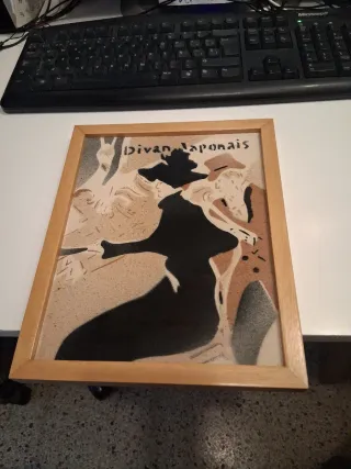 Azulejo decorativo con la imagen Divan Japonais de Toulouse Lautrec. Precio Negociable. - Marco de madera. - Diseño de arte gráfico.