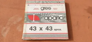 Baldosa de gres de la marca Aparici, con unas medidas de 43x43 cm. - Fabricada en España. 5 cajas con 6 unidades. 1 caja con 4 unidades. Total 34 unidades. (6,2 m2). 8€/m2