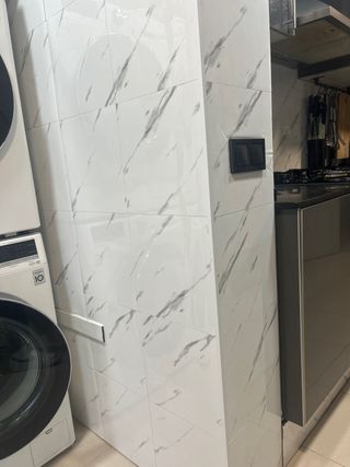 Dos baldosas porcelánicas con un elegante diseño que imita el mármol. Son ideales para dar un toque sofisticado a cualquier espacio. - Medidas: 75,5 cm de ancho x 151 cm de alto. - Acabado: Efecto mármol. - costaron 116 €