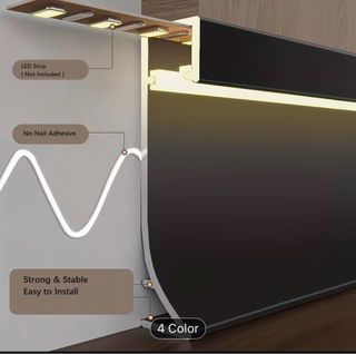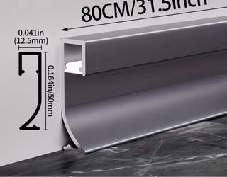 Rodapié zócalo de aluminio en color gris grafito, con un diseño moderno y elegante. Ideal para dar un acabado profesional a tus espacios. - Material: Aluminio - Color: Grafito - Medidas: 80 cm de largo - Incluye difusor LED para iluminación ambiental. Dispongo de 24 metros. Cada paquete trae 2,4 metros dispuesto en 3 tiras de aluminio grafito de 0,8 m. Con accesorios. El precio del cada paquete es de 20€ incluye 3 tiras de zocalo, tres difusores led,y 6 accesorios aluminio. Tiras sueltas a 9€ Queda precioso y moderno