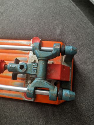 Cortadora manual de baldosas RUBI TS-30, en buen estado a pesar del uso. Ideal para cortar azulejos y baldosas. Falta ruleta - Marca: RUBI - Modelo: TS-30 - Material: Metal resistente - Color: Verde azulado y naranja