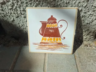 Azulejo cuadrado con diseño de tetera en tonos marrones y amarillos. Medidas 15x15 cm Tengo unos 79 azulejos. Están nuevos a estrenar. - Diseño de tetera estilizado. - Tonos marrones y amarillos/naranjas. Para cocina vintage