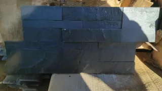 Piezas de piedra pizarra para revestimiento o decoración. - Color negro intenso. - Acabado natural y texturizado. - Diseño apilado para un efecto moderno.Disponible 100m2