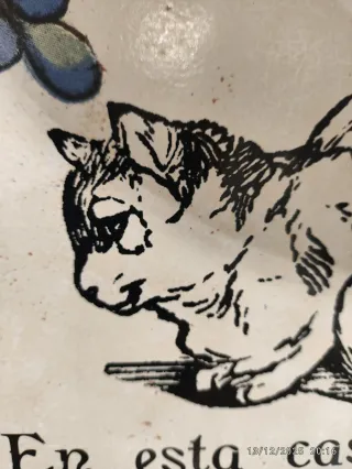 Baldosa cerámica decorada con un dibujo de gato y una frase. - Diseño original. - Motivo felino. - Frase En esta casa se hace lo que manda el gato. Medidas: 20 cm x 20 cm. Tengo más cosas en mi perfil.
