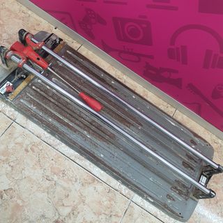 Cortador de azulejos profesional en perfecto estado, listo para usar. Incluye su maletín de transporte. - Guías de corte de acero. - Mango ergonómico para un mejor agarre. - Base de goma para mayor estabilidad. - Maletín rojo resistente para proteger la herramienta.