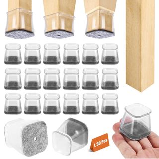 Azyvum 30 Piezas Protectores de Suelo de Silicona Transparente para Patas de Silla, Tacos Sillas Patas Cuadradas, Tapas de Silicona para Patas de Silla con Fieltro