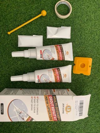 Kit de reparación para juntas de azulejos en color blanco. Incluye dos tubos de producto y accesorios. - Dos tubos de 100g cada uno. - Fácil de usar y rápido secado. - Incluye aplicador y espátula.
