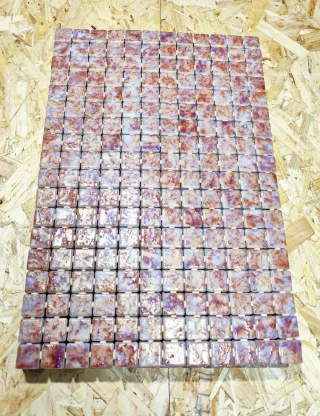 Lote de teselas de gresite con acabado Onix, ideales para revestimiento de duchas o paredes. 10 hojas. - Diseño con veteado en tonos blancos, morados y rojizos. - Acabado brillante.