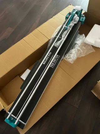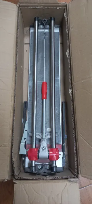 Cortadora de azulejos profesional para azulejos de 120cm o menos nueva sin estrenar, incluye cuchilla de repuesto pilas para laser completa y lista para funcionar nueva sin estrenar con sus plásticos ideal para trabajos de albañilería y reformas. - Guías de corte dobles. - Base de corte amplia. - Mango ergonómico.