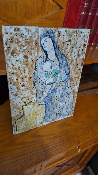Bonito cuadro decorativo realizado sobre baldosa, con una representación de la Virgen y el Niño. - Diseño artístico único. - Ideal para colgar o exhibir. Alto : 40 ancho : 30 Teléfono: 636 20 48 47