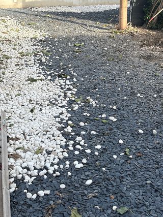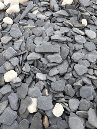 Lote de 1000 kg piedras de pizarra y bolos blancos. Ideal para decoración de jardines o proyectos de paisajismo. - Piedras de pizarra en tonos grises. - Bolos blancos redondeados. el precio es tan bajo porque se tiene que recoger por la persona interesada