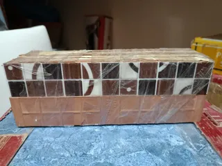 Conjunto de cenefas de azulejos con un diseño de mosaico en tonos marrones y blancos. Ideales para decorar paredes. 16 unidades. Longitud 25,2cm cada una