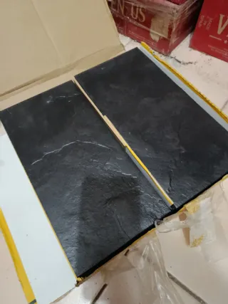 Azulejos con acabado que imita la pizarra natural. Ideales para dar un toque moderno y elegante a cualquier estancia. 18 piezas Medidas 33x16cm