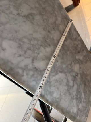 Foto 1: Color gris y blanco ; Medidas 106 cm de largo x 41'5cm de ancho; 25 €; 1 unidad Foto 6; color gris y blanco; Medidas del alargado 51 cm de largo x 31, 5 cm de ancho; 10 euros unidad, tengo 2 unidades de esta medida. En buen estado. Tal cual se puede ver en las fotos. Tengo muchos más mármoles en mi perfil. Por peso y volumen, el mármol grande no lo envio. Los pequeños si los envío. - Material: Mármol. - Colores: Gris y blanco.