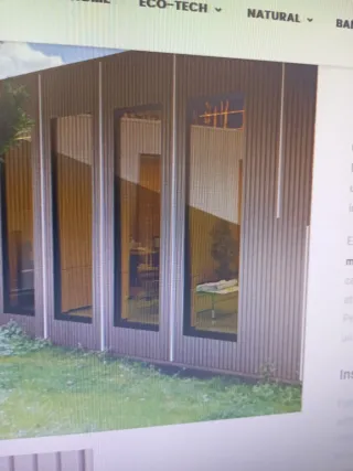Revestimiento exterior de WPC, ideal para fachadas y exteriores. - Material compuesto de madera y plástico. - Diseño de lamas verticales.