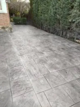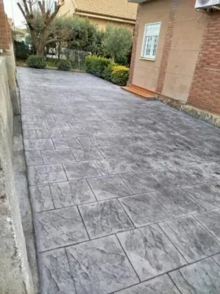 Pavimentos de hormigón impreso con diseño de baldosas. - Ideal para exteriores. - Acabado imitación piedra.