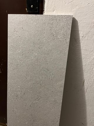Baldosas de cerámica con un diseño moteado en tonos grises. Ideales para revestir suelos o paredes. - Acabado mate. - Textura sutil. - Marca Hönnun Nakhon cream - 30x90 - 1,08m2 cada pack - 20€ cada pack (2 packs disponibles, 2,16m2)