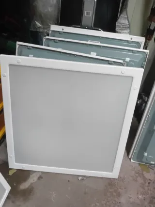 Panel de luz LED luz calida o amarilla, cuadrado, ideal para iluminar espacios interiores. Su diseño moderno se adapta a diversas estancias. SE VENDEN A 7 EU LA UNIDAD TODOS JUNTOS A 5 EU - Marco de color blanco. - Difusor translúcido. - 14 DE 60X60 - 5 DE 62X62 ALGUNOS PRESENTAN ARAÑAZOS EN LA PANTALLA , PERO NADA DE IMPORTAR PARA SU USO.