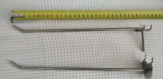 Ganchos para panel perforado de varias longitudes. Total 141 ganchos.