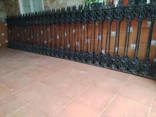 Conjunto de dos rejas antiguas de hierro macizo, con un diseño ornamental, ideales para cancelas y terrazas. Miden 4,5 m de largo por 1 m de alto - Material: Hierro forjado - Diseño: Ornamental con detalles. - Color: Negro.