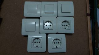 Lote de enchufes e interruptores de la marca Niessen. 4 enchufes con su marco y 4 interruptores con su marco. - Diseño moderno y elegante. - Color blanco.