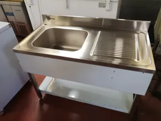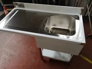 Pica de lavadero industrial de acero inoxidable con seno izquierdo. - Medidas: 120 cm de largo x 60 cm de ancho. - Material: Acero inoxidable. - Diseño con escurridor integrado.