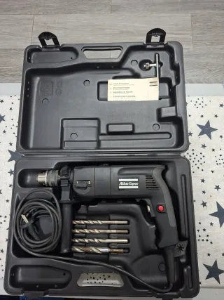 Taladro Atlas Copco de 700w en su maletín original. Incluye accesorios. - Maletín de transporte negro. - Taladro eléctrico Atlas Copco. - Juego de brocas. - Llave para el portabrocas.