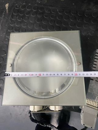 Lote de focos empotrables con carcasa gris y difusor translúcido. - Diseño cuadrado. - Incluye balastros. - Listos para instalar.