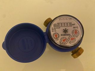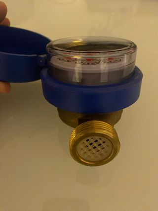 Contador de agua B Meters, modelo PN 16 Qn 1,5. - Fabricado en Italia. - Clase B, H=A, V. - Temperatura máxima de 30°C. - Conexiones de latón.