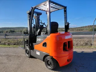 Carretilla elevadora diésel en perfecto estado de funcionamiento, marca Doosan, motor Kubota, 2.000 kg de capacidad de carga, con mástil triplex a 4,75 m, automática y desplazador lateral. ☎️ 656.349.762
