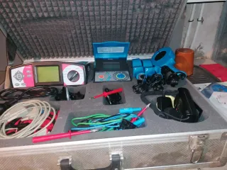 Kit de comprobador de tierras con todos sus accesorios. - Maletín amarillo resistente. - Cables de conexión verde y rojo. - Puntas de tierra. - Manual de instrucciones.