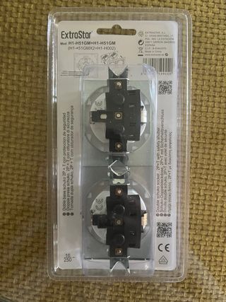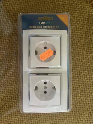 Base doble de enchufes Schuko 2P + T de la marca ExtraStar. Incluye protección de seguridad. - Color blanco. - Diseño moderno.