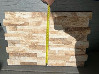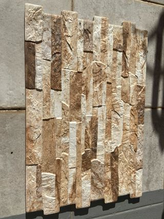 Baldosas decorativas con un diseño que imita la piedra o el ladrillo. Aportan un toque rústico y moderno a cualquier pared. - Textura tridimensional. - Tonos marrones y beige. 25€ por las 12 unid.