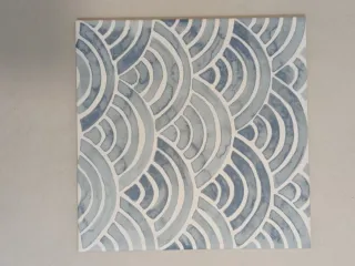 Baldosas con un diseño de ondas en tonos azules y blancos. Aportan un toque de estilo y originalidad a cualquier espacio. - Diseño de ondas. - Tonos azules y blancos. - Caja con 25 piezas. - Ideal para