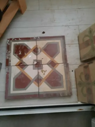 Suelo hidráulico original de una casa de principios del siglo XX. - Diseño floral y geométrico. - Tonos beige, marrón y burdeos. 20x20cm Regalo el rodapies y los recortes Ya esta listo para recoger Se entrega con restos de yeso Se encuentra en Chella, a 45” de valencia