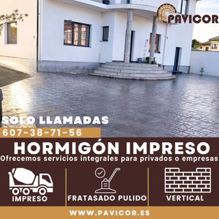 Presupuesto sin compromiso! 🏡 Hormigón Impreso – diseño decorativo para patios y zonas exteriores ✨ Hormigón Pulido – acabado liso y brillante, ideal para garajes 🔨 Hormigón Fratasado – superficie firme y resistente para naves industriales 🧱 Hormigón Vertical – revestimiento decorativo y duradero para paredes 💪 Ventajas: ✔ Alta resistencia y durabilidad ✔ Fácil mantenimiento ✔ Variedad de acabados y colores ✔ Solución económica y de larga vida útil 📍 Trabajamos en patios, garajes, naves industriales y más. TLF: 607387156 E-MAIL: contacto@pavicor.es
