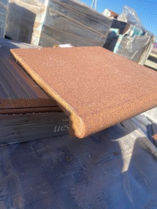 Rodapié de cerámica para exterior, color miel modelo ipanema . comprado en Leroy Merlin - Medidas: 9x75 cm. - Referencia: IPANEMA. - Tono: Miel. - Código: PZ/CJ:13 - Fabricado el 03/06/2022 5€ cada uno. tengo 2 paquetes sin abrir