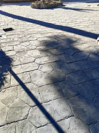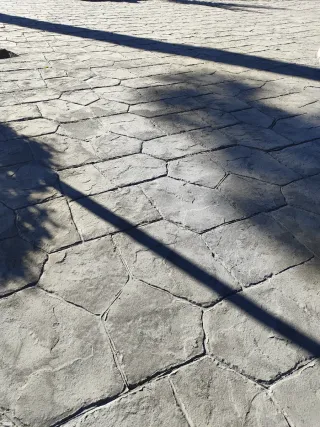 Suelo de hormigón impreso, ideal para exteriores. - Acabado liso y resistente. - Aspecto moderno y duradero.