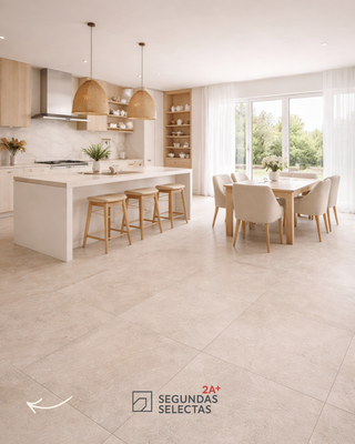 Baldosas de suelo porcelánico en color marfil, con un tamaño de 60x120 cm. - Acabado mate. - Ideal para interiores y exteriores. - Resistente al desgaste. - Mate