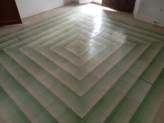 Baldosas de cemento hidráulico antiguas con un diseño geométrico en tonos tierra y verde. Ideales para dar un toque vintage a cualquier espacio. - Diseño geométrico. - Material: Cemento hidráulico. - Precio por metro cuadrado: 20€ Muchas losas ya quitadas, el resto para sacarlas. Recogida en Camas ( Sevilla)