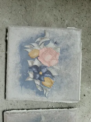 Baldosas hidráulicas con un diseño floral pintado a mano. Son perfectas para decorar cualquier espacio. - Diseño de flores en tonos rosas, amarillos y azules. - Acabado mate. - Son 200 recholas de 15,5 cm por 15,5 cm , más 15 recholas con dibujos florales las cenefas las regalo. - Salen casi 5 m cuadrado.