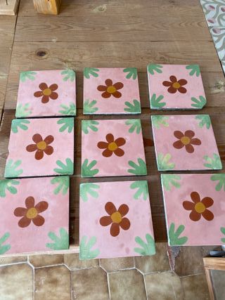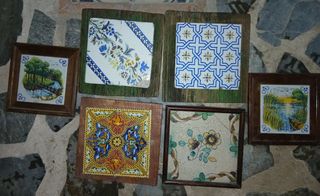 Baldosas mosaico hidráulico 20x20 cm y baldosas incrustadas al fuego (varias medidas 10x10cm, 13x13 cm), originales. Varios modelos y cantidades. Precio unitario baldosa hidráulica sin mortero 5€, con mortero 3€. Precio unitario baldosa incrustada sin mortero, juego de 4 piezas 5€. Con mortero juego de 4 piezas 3€. Precio negociable por comprar todo el stock. No hago envíos, hay que pasar a recoger.