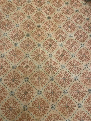 Suelo hidráulico con diseño vintage, ideal para dar un toque retro a cualquier estancia. - Patrón geométrico en tonos tierra y granate. - Piezas cuadradas y gruesas - Piezas rescatadas de una casa antigua - Se entregan tal cual, hace falta limpiarlas - Medidas 20cm ancho x20cm largo x2cm grueso - Algo más de 8 metros cuadrados
