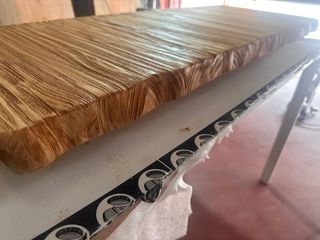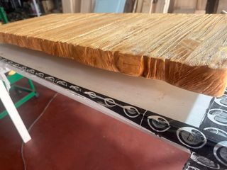Encimera de madera maciza, ideal para baño o como balda. Se realizan a medida 1,40x40x4cm grosor De mayor grosor y medida preguntar - Material: Madera maciza. - Acabado rústico con bordes irregulares.