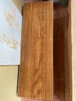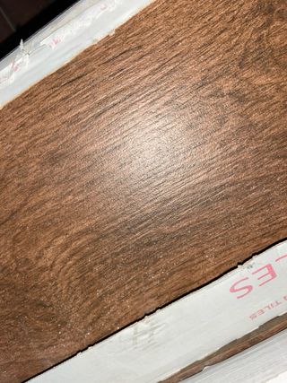 Baldosas con acabado de madera, ideales para revestimiento. - Diseño de vetas verticales. - Tonos cálidos de madera. **importante, venir a buscarlo**