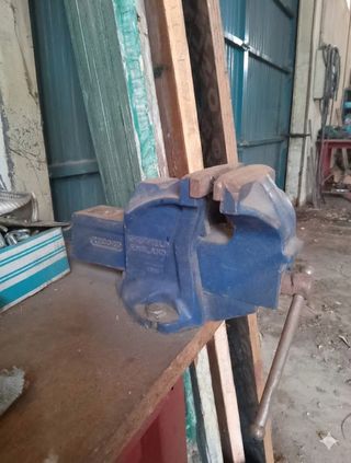Se vende estación de trabajo completa. Incluye 3 piezas indivisibles: 1. Mesa de trabajo: Estructura metálica reforzada (patas en X), encimera de madera resistente, 2 cajones y balda inferior. • Medidas: 115 cm largo x 54,5 cm fondo x 78 cm alto. 2. Panel de herramientas: Metálico perforado a juego, incluye soportes y ganchos. 3. Tornillo de banco: Marca RECORD No3 (Sheffield England), muy robusto, calidad profesional. Estado: Material industrial usado, suciedad superficial pero estructura sólida. Ideal garaje, bricolaje o taller mecánico. Oportunidad por liquidación de taller.