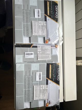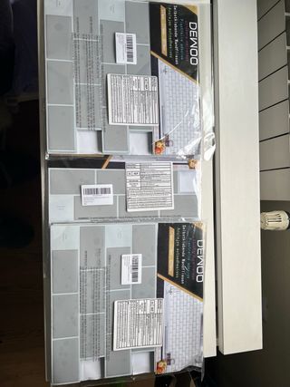 Pack de azulejos adhesivos de la marca DEWOO con diseño de ladrillo en color gris. - Fácil de instalar. - Acabado brillante. - 3 paquetes de 10 piezas (total 30 piezas)