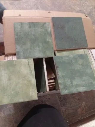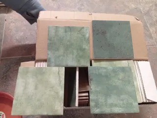 Se venden baldosas de cerámica con un diseño rústico y acabado en tono verde. Ideales para dar un toque único a cualquier espacio. - Color verde con variaciones. - Diseño rústico.