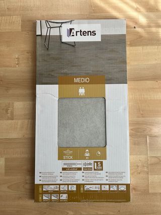 Caja SIN ESTRENAR de baldosas adhesivas de PVC para suelos de interior. Precio original: 39,95€ - Modelo: Medio Stick. - Medidas por baldosa: 30,48 x 60,96 cm. - Grosor: 1,5 mm. - Cobertura: 2,23 m². - Contiene 12 baldosas. - Durabilidad según fabricante: 5 años.